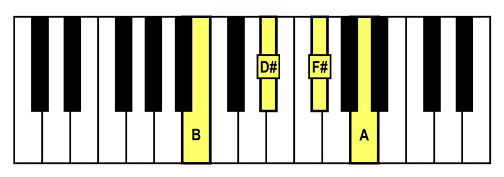 - Spelling: B-D#-F#-A (B Major Triad + A)