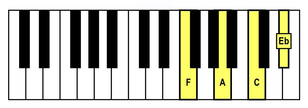 - Spelling: F-A-C-Eb (F Major Triad + Eb)