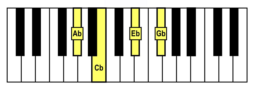- Spelling: Ab-Cb-Eb-Gb (Ab Minor Triad + Gb)
