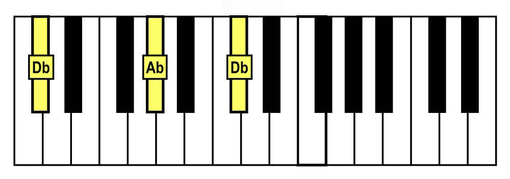 Notice that the Db power chord uses the exact same physical keys as the C# power chord.