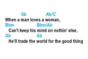 Chords and lyrics for “When a Man Loves a Woman” … a free download in easy to read format specially designed for both vocalists and accompanists… Table of Contents About “When a Man Loves a Woman” A lament about enduring the blindness and miseries of being in love… written by Calvin Lewis and Andrew Wright… … Continue reading “When a Man Loves a Woman” Chords and Lyrics